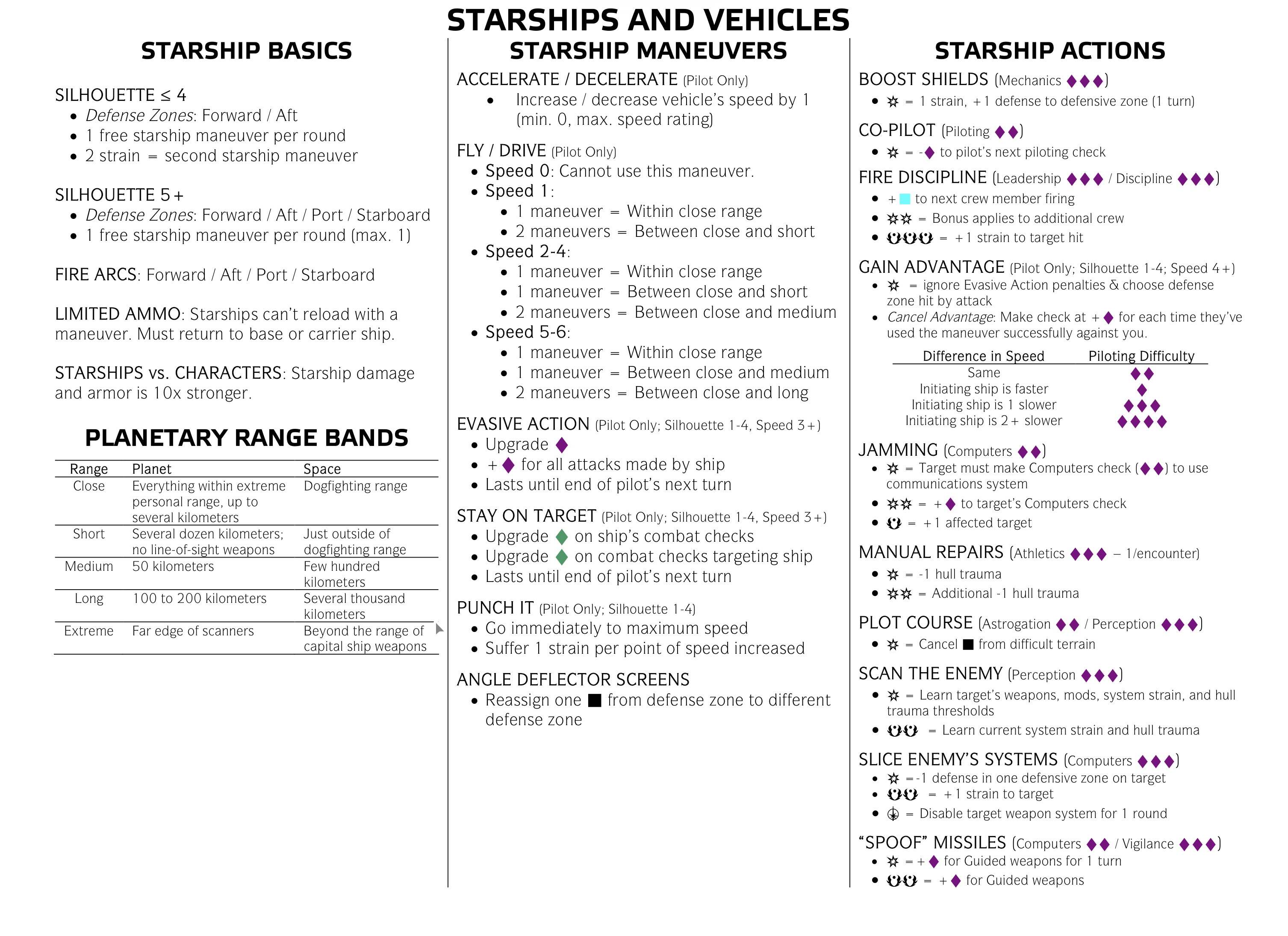 Reminder The Alexandrian has a nifty quick reference guide and today we have been making extensive use of the “Starship Actions” bit:
