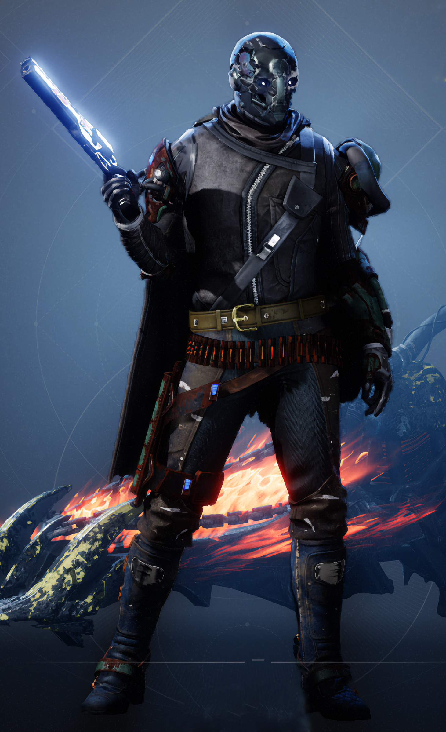 Was made/modified/taught by his mentor, smuggler captain TKTKTKTKTK, but things went downhill on his ship after the captain died. Still carries his preserved heart in his chest cavity (secret). Hence smuggling background, general piracy, some combat mods/skills.