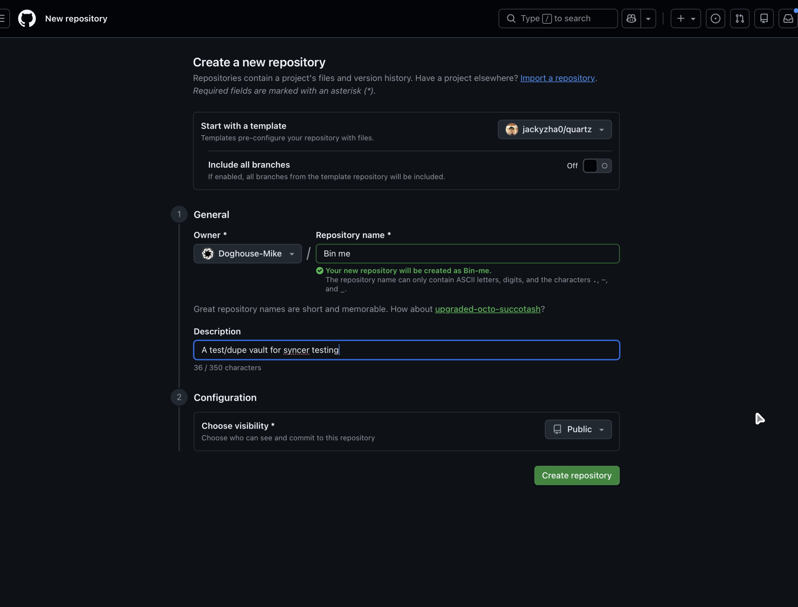 Name it, throw in a description, hit “Create repository”