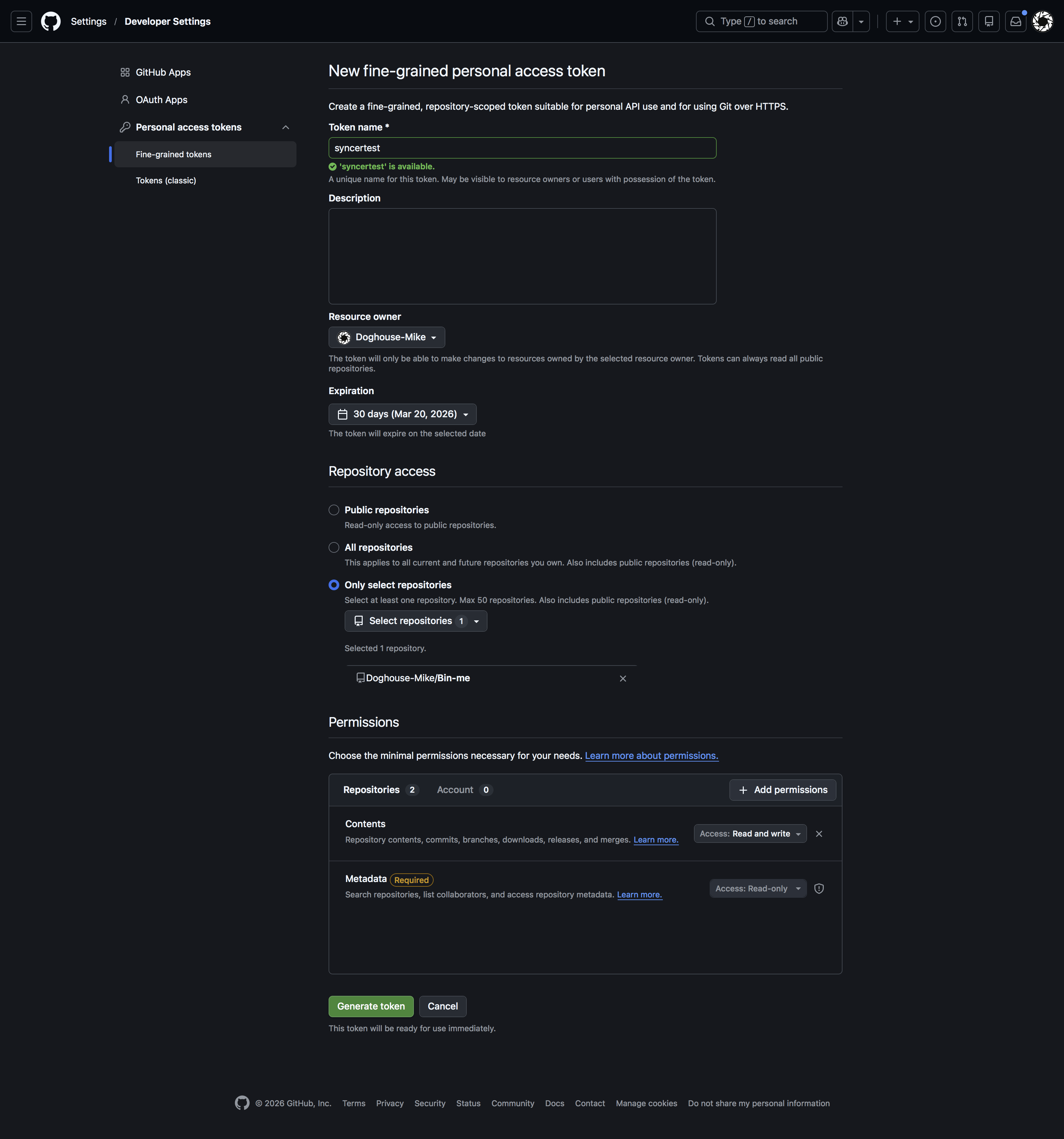 - Under Permissions > Repository permissions, set Contents to Read and write.
