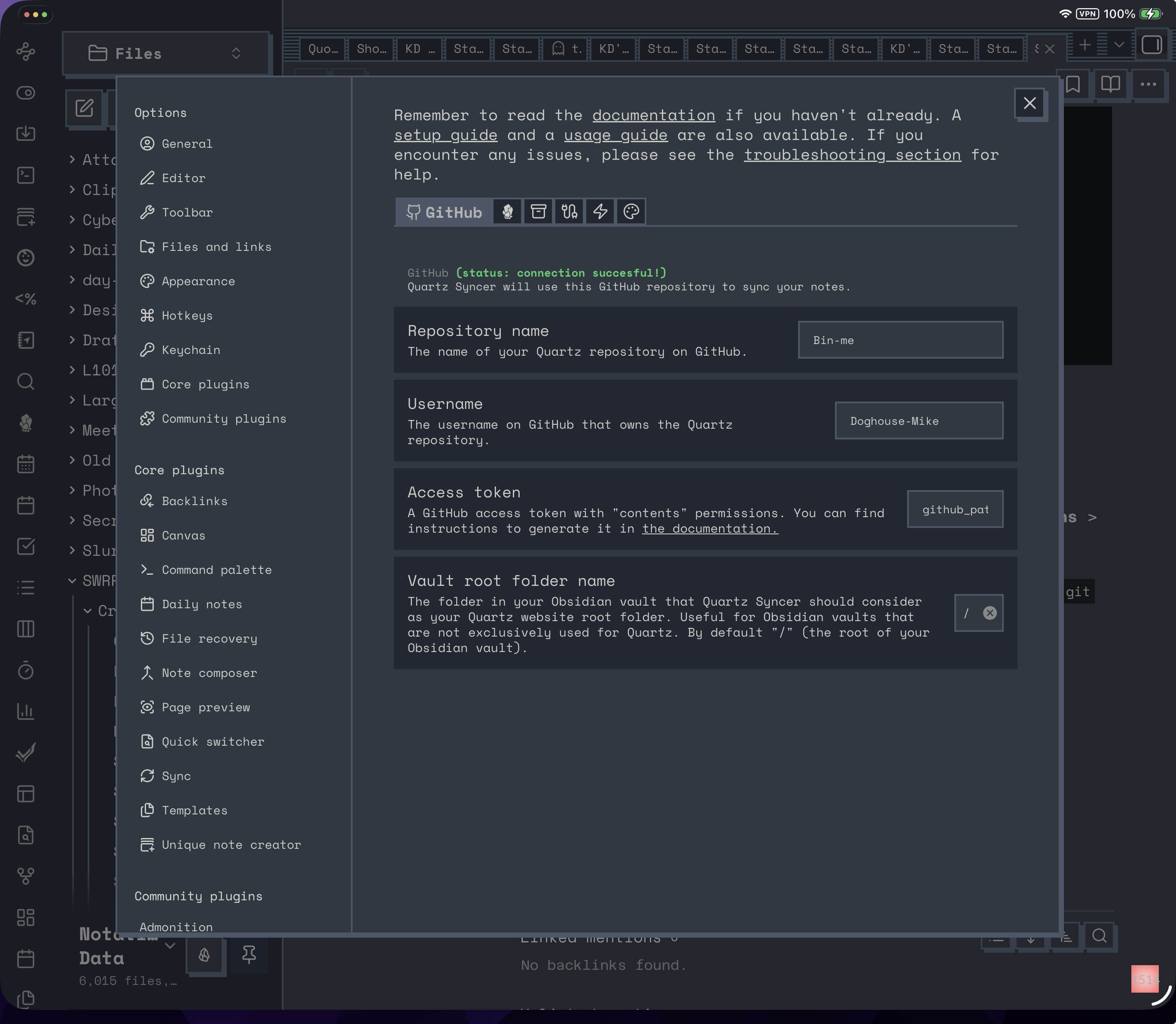 Prompted by some chats in the discord, a (hopefully) straightforward guide to getting Quartz set up with Obsidian. Mostly following the official docs. One could probably skip the first couple of steps if you’ve already got a Quartz repo, but this is a test to show you don’t need a local install of Quartz. I think I’d still prefer to have that local copy so a manual npx quartz sync etc remains available, even if 99% of the time publishing will be handled by the plugin. Then again, I guess that could be set up later if required.