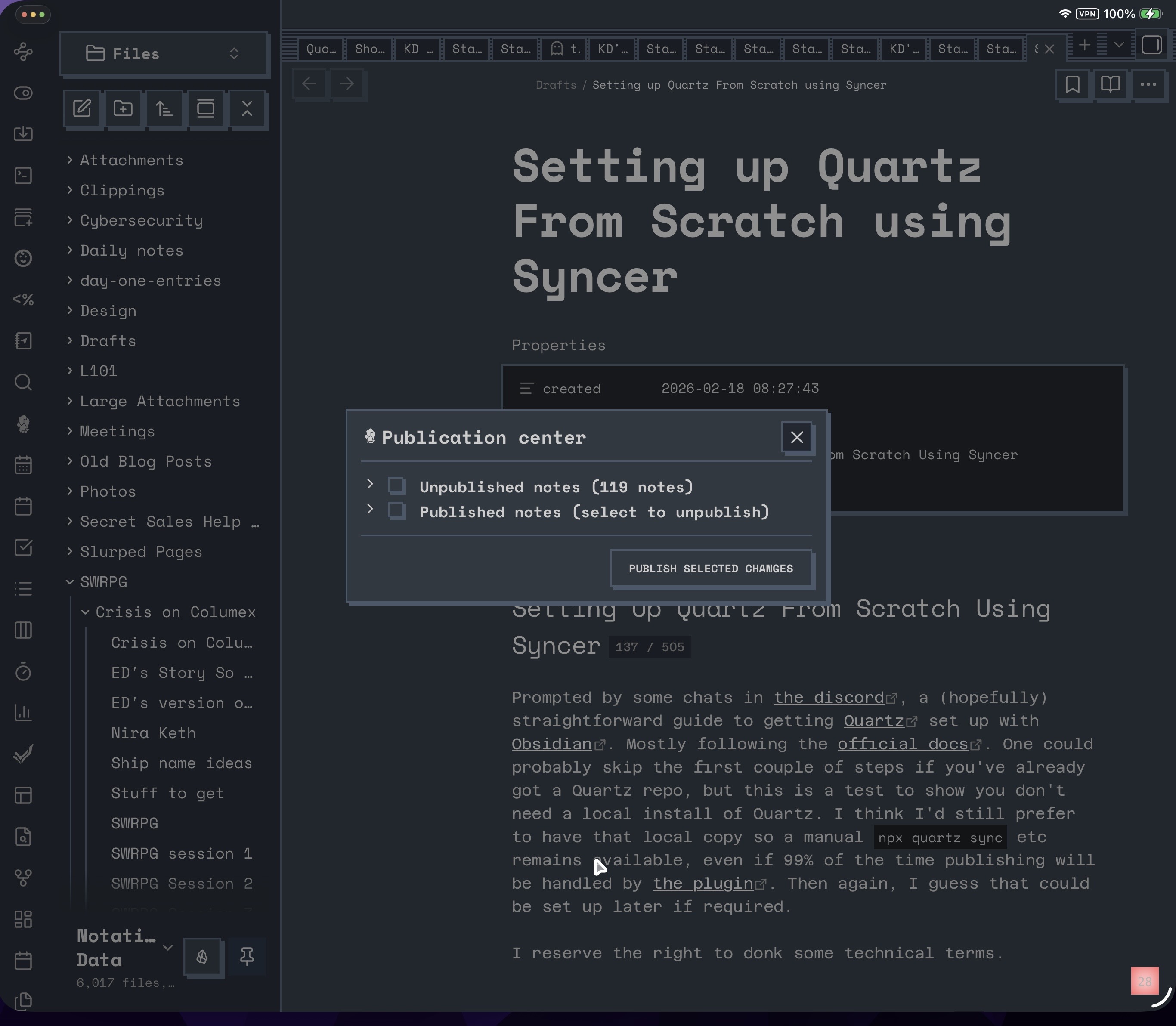 I reserve the right to donk some technical terms. This entire thing was done using an iPad. As far as Obsidian goes it faces the same constraints as the smaller “mobile” versions, so apart from the bigger screenshots, this should be just as possible on a phone.